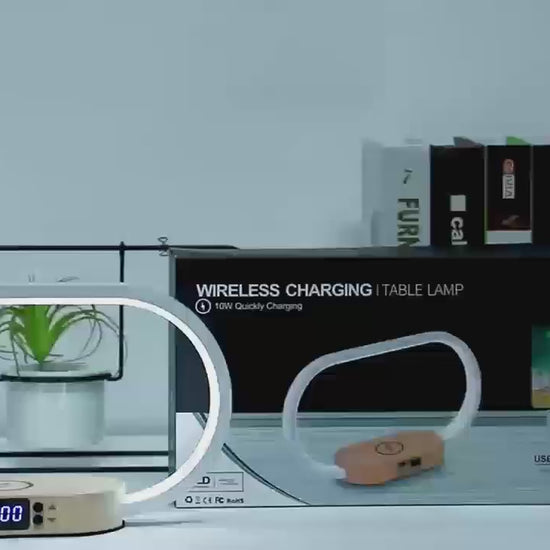 Lampe de chevet en bois avec contrôle tactile, dotée d'un chargeur sans fil de 15W et d'une horloge, capacité de charge Qi maximale de 15W, idéale pour la lecture au chevet, la maison et le bureau.
